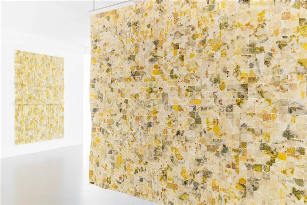 Filten ho nyttar er innarbeida med lim slik at tekstilen blir hard, men framleis ser og kjennes mjuk ut. På somme av arbeida har kunstnaren nytta ecoprint som er ein type plantefargingsteknikk. Teknikken er «ustabil», på den måten at fargen etter kvart vil falma bort og motivet forsvinna. I somme av arbeida med denne teknikken har kunstnaren nytta plastsøppel frå stranda ved Obrestad hamn. Etter kvart vil avtrykket av blader og blomar forsvinna, men dei fargerike plastelementa vil stå attende. Tekstilarbeida er laga etter same prinsipp som lappeteppe; fleire hundre små kvadrat med filt er sydd saman til store arbeid.